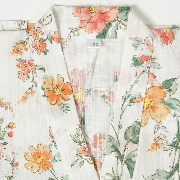 【きもの山喜】子供浴衣 女の子 120cm 7-8才 2点セット ふわふわ兵児帯付 キッズ ジュニア ゆかた 可愛い 生成り