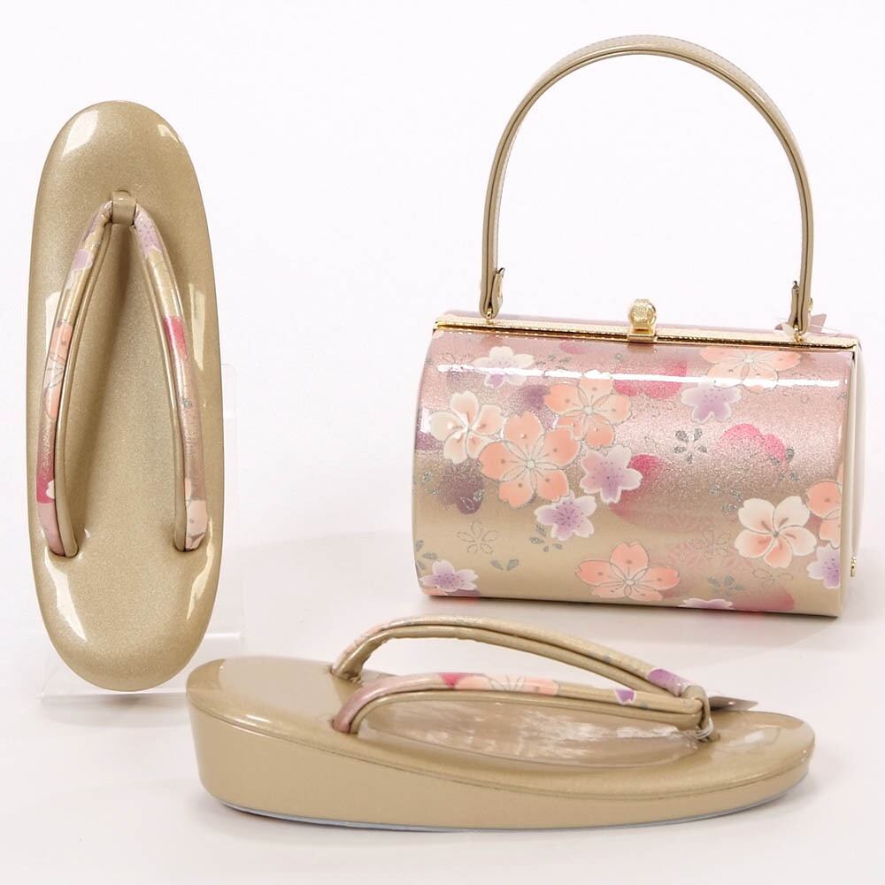 【きもの山喜】草履バッグセット フリーサイズ 振袖 成人式 卒業袴 和装 着物 可愛い 日本製 ピンク ゴールド